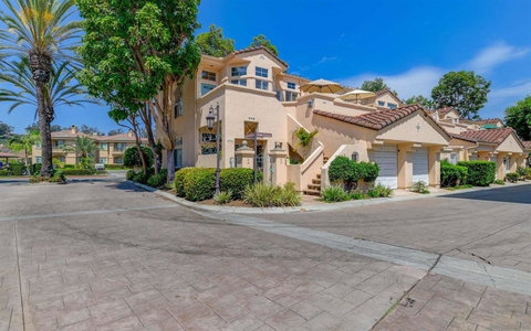 Discover an exceptional property just steps away from the Morgan Run golf course and only minutes to the RSF Village and the incredible beaches of Del Mar and Solana Beach! Sunny upper home and an end unit, so lots of light and extra windows! High ceilings, plantation shutters, new carpet, newer kitchen counter tops & newer appliances. Attached garage plus an additional assigned parking spot. Fireplace in living room and huge walkout upper deck, that's great for entertaining and enjoying a meal al fresco! Enjoy resort-style living within the Whispering Palms community, where a lovely pool and spa area await, offering the perfect setting for relaxation and rejuvenation. There's a modern and clean barbecue and pool area, ideal for entertaining family and friends. Morgan Run Country Club will be undergoing a major renovation! This is your chance to get in the community before prices sky rocket. Solana Beach school districts!