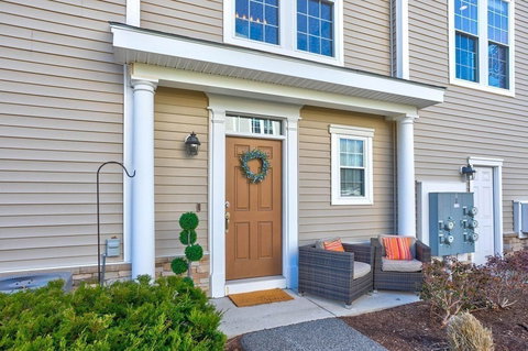 Welcome home to Reading Woods, chosen for its superb mix of proximity to city life and luxurious conveniences. Bright and sunny end unit, built with amazing quality & sophisticated design offers an open floor plan that blends easy living with refined entertaining & features elegant trim work, 9' ceilings; all artfully designed with the space being bright, open & flexible. Other features include: EIK kitchen with custom cabinets, granite breakfast bar, gas range, S/S appliances, master bath, walk in closet and marble fireplace. Convenient mudroom leading to 2 car garage, with private home office framed by beautiful french doors complete the lower level. Take note of on-site fully equipped gym, clubhouse, playground, and walking trails. Minutes to I-93/95, commuter rail, town center, & conservation trails. Superb school system, strong sense of community, & 12 short miles to Boston are just a few of the reasons why you should call Reading home!