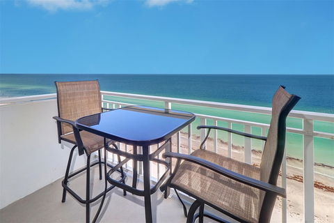 Stunning Direct Beach Front 2 Bed 2 Bath 1,450 Square Foot Corner Residence with 2 Balconies offering Unobstructed Panoramic Breathtaking Views. Views from the balcony extend all the way to Anna Maria Island and Downtown St Petersburg as well as the open Gulf of Mexico and beautiful sunsets. The interior of the unit has lots of upgrades including tile flooring throughout, updated bathrooms with attractive vanities, quartz counter tops, custom tile work, ...