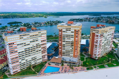 Luxurious just renovated (2018) Corner unit Penthouse at the Redington Towers. The pictures will speak for themselves with their breathtaking decor and views from the wraparound balcony. The front door leads into a study area and breakfast table adjacent to the kitchen with tons of counter space and brand new everything. Dining room is connected by L shape to the large living room and both are outlined by the balcony. The balcony has a door leading right into the extra large master bedroom with it's own personal bathroom not connected to the outer areas. The second and third bedrooms each have their own full bathrooms just in the hallways. Brand New Electric Shutters on Balconies and all windows all around.... Sliding doors and windows all Brand new tinted with double pan..... Must see ….