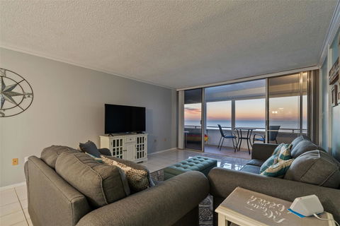 Come live the beach life in this stunning 15th-floor condo overlooking the Gulf of Mexico in beautiful Redington Shores! Enjoy breathtaking, unobstructed views and spectacular sunsets right from your private 26-foot balcony—or head down to the beach and feel the sugar-white sand between your toes. This light and bright 1-bedroom, 1.5-bath residence offers just under 1,000 square feet of thoughtfully designed living space. The updated kitchen features marble countertops, soft-close shaker cabinetry, and a striking blue-green backsplash that perfectly echoes the ocean beyond your windows. Ocean views flow seamlessly through the kitchen, dining area, living room and even into the spacious bedroom. The bedroom suite is impressively large—over 220 square feet—with ample room for a sitting or office area. It also includes a makeup vanity, walk-in closet and private bath. Tile flooring extends throughout the entire unit—no carpet to worry about! Additional perks include one covered parking space (with an optional second space available for purchase) and a host of resort-style amenities: a beachfront pool, direct beach access, grills, fitness center, storage area and more. Condo dues decreased for 2026 from $881 to $797/month and conveniently cover water, sewer, trash, cable, and internet. Whether you’re seeking a vacation getaway or a full-time coastal retreat, this condo checks every box. Be sure to explore the 3D Virtual Tour, then schedule your private showing to experience beachfront living at its finest!