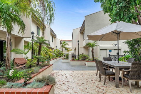 This coastal gem is conveniently located in Seaside Villas, a small 13 unit community 1/2 block from the beach and just a few blocks away from the heart of the Riviera Village. This is where you go for shopping, entertaining, dining, and enjoying sunset views along the Esplanade and sandy beaches. The private end unit has a front patio providing a charming outdoor space that welcomes guests and offers a place to relax. Inside, the home has been freshly painted, it features 2 bedrooms each with their own bathroom and laundry with washer/dryer all conveniently located on the first level for easy accessibility. The top level has an open concept layout with spacious living room that flows seamlessly into the dining and kitchen complete with stainless steel appliances, new flooring, granite countertops and an additional private patio opening out from the living area. There is wood plank flooring (except in bedrooms), a gas burning fireplace, recessed lighting, an abundance of natural light from the additional windows and wood shutters throughout. This beautiful tranquil complex has been recently painted and is immaculately maintained. There are two dedicated secured subterranean parking spaces with extra storage cabinets plus 5 available guest parking spots that come in handy for beach days with friends. This home has a walker's paradise score of 90% and an 85% Bikeable score. This is beachlife living don't miss out.