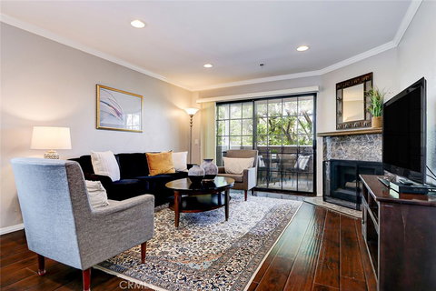 Welcome home to this darling 2 bed 2 bath condo. This end unit on the second floor features wood/laminate floors throughout, smooth ceilings with recessed lighting, crown molding and a lovely gas/wood burning fireplace for cozy evenings. The living room leads you out to a private covered. The all white kitchen is bright and clean. There is a full capacity stackable washer/dryer its own closet in the kitchen. The large primary bedroom enjoys its own en-suite bathroom and has two good sized closets. The second bedroom also features a bathroom. The windows in this unit have been upgraded with energy efficient dual paned windows. This unit comes with 2 side by side parking spaces in an underground security gated garage. Guest parking is easy. The property is located close to top shopping the Village, CSUN, Pierce College as well as nearby restaurants and entertainment! This charming condo complex is located just steps away from Reseda Park, one of the nicest parks in Los Angeles!