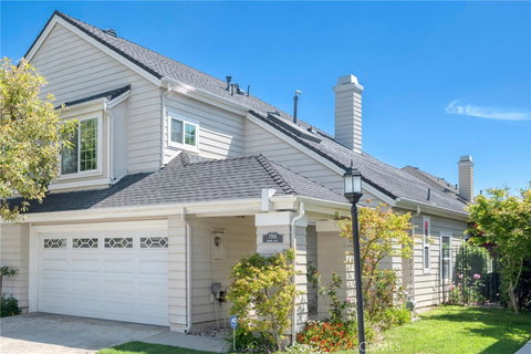 Don't miss this rare find! A detached townhome in a gated community with its own PRIVATE POOL! And with a low HOA of $230.25/month, and only one common wall, this two-story Cape Cod traditional home has everything you could ask for - and more! The living room boasts of expansive, 17-foot vaulted ceilings, a wood/gas burning fireplace as well as convenient built-ins and abundance of natural light. The spacious ground floor primary bedroom with its high ceilings, dimmable recessed lights and walk-in closet, has an exquisitely renovated en suite bathroom featuring an elegant jetted soaking tub, Crema Marfil marble tile and luxurious oil rubbed bronze fixtures. Upstairs you will find two additional bedrooms separated by a deluxe full bathroom with marble tile, oil rubbed bronze fixtures and a separate dressing table with direct access to one of the bedrooms. There is a half bath at the home's entrance, premium laminate flooring throughout and a large skylight that naturally illuminates the winding staircase, further highlighting this property's open floor plan. But it gets better! The fully fenced yard features its own private swimming pool - unheard of for a townhome - and it has been upgraded with a saltwater system newly installed in 2021. Perfect for entertaining or your own peaceful sanctuary, this outdoor patio space has a planted garden bed and beautiful views of orange and persimmon trees. The property has an attached two-car garage, with parking for two more cars in the driveway and ample additional guest parking inside the development. Inside the remote controlled garage you will find a matching LG Smart Washer/Dryer set purchased in 2021 as well as extensive wall-to-wall shelving for plenty of storage. The home's other numerous features include dual pane windows throughout, a Nest thermostat, Eufy doorbell security system, a whole-home water softening system, and reverse osmosis and alkaline water taps in both the kitchen and upstairs bathroom. This charming, gated community with its cobblestone streets has 36 homes, well maintained grounds and a very low HOA. Conveniently close to shops, restaurants and public transportation, this home is truly one-of-a-kind! Come seize your opportunity to own in this wonderful community!