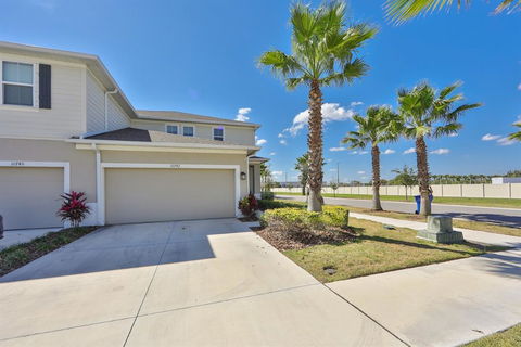 This immaculate townhouse is turn key ready! Nestled on a corner lot with many upgrades! Kitchen has Granite countertops with a new backsplash. Master Bedroom is located on the first level with a custom closet. Upgraded vinyl plank flooring throughout the first level, wrought Iron Railing leads to second level where you will find a loft that can be used for office space. Ceiling Fan installed in Screened lanai, Ceiling Fan custom installed to accommodate high ceiling in the Great Room. White Shaker cabinets installed in laundry room for extra storage. Two overhead storage racks and shelving were installed in the two car garage. This Smart home also features a Nest Thermostat which allows you to regulate the temperature in the rooms and open your garage door via your cell phone. Water Softener conveys! The community has a resort style pool with a spacious gym.