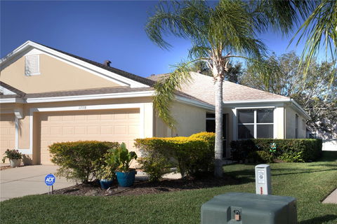 Absolutely stunning move in ready villa in Rivercrest. Low maintenance, low HOA – high quality and beautiful. This home is beautiful the minute you walk in the front door where you are greeted with a spacious and open floorplan. There are tile floors in the main living areas and new wood look tile floors in the bedrooms and master bath. The kitchen boasts cabinets, new appliances and a beautiful stainless farm style sink. There is plenty of storage space as well as a laundry area equipped with a washer and dryer. The living area is spacious and opens to the oversized screen lanai with a nice large greenspace to the rear of the property. The master bedroom offers a newly renovated bath with gorgeous walk-in glass shower with exquisite tile finishes as well as a new double sink vanity . There is a walk in closet as well. A split bedroom plan- there is a guest bedroom to the front of the home and an office – current owner used is as a bedroom but it is truly an office with double doors. The AC is only a couple years old and the community takes care of the roof, exterior paint and lawn maintenance all for only $225 a month. There is a 2-car garage providing room for your cars as well as storage needs. The community of Rivercrest has 2 community pools, a recreation building, a tot water park, tennis and basketball courts and excellent schools withing walking distance. Located close to I75 it’s an easy to commute to downtown and the airport.