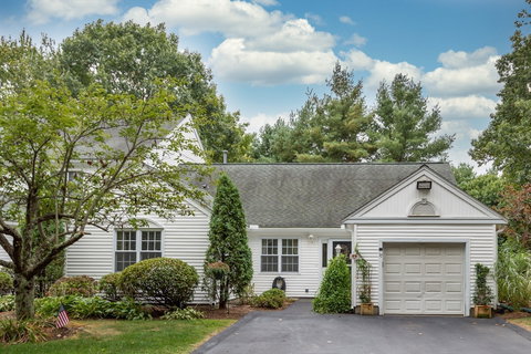 Located in a very private and beautiful setting, is this well maintained and nicely updated END UNIT. Seeking for one level living with an attached heated garage - look no further! Entering the home you are welcomed by a cathedral living room with gas fireplace and an oversized slider door with views out to the private backyard. The kitchen has been updated with butcher block counters, farmers sink, and tiled backsplash. The main bedroom has a walk-in closet and en suite with linen closet, walk in shower, and granite vanity. Windows, heat, and central air have all been updated within the past few years and the home has a water filtration system! The placement of this home within the community is extremely desirable and offers privacy and a sense of single family living - without all the upkeep! Woodsburg is a lovely, and well maintained community, located just minutes to the commuter rail, highway access, shopping, restaurants, and more!