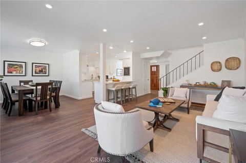 Casa Verdes is a small community that feels like a neighborhood of single-family homes. This home is full of charm, and the floor plan is perfect for entertaining with beautiful vinyl plank floors throughout the main level. The recently updated and remodeled kitchen has gorgeous countertops, a stainless steel sink, appliances, and new white shaker-style cabinets. The kitchen opens to the spacious living area and large dining room, looking out to the good-sized private patio. This main level also has a good size bedroom with a fireplace. It can be used as an office and has a large sliding glass door that lets in lots of natural light and opens to the front courtyard. There's also a half bath on this main level. Upstairs continues with vinyl plank floors throughout, and there are two bedrooms. The primary bedroom features an updated en suite bath, while the second bedroom has a walk-in closet and an additional updated full bathroom in the hallway. In addition to the cosmetic upgrades and remodel, you will find updated double pane Milgard windows and recessed lighting throughout the home. This community is a quaint and quiet neighborhood that features a pool, landscaped grounds & a clubhouse with a kitchen. Discover the wonderful lifestyle of Palos Verdes Peninsula, with an abundance of ocean & hiking trails and award-winning Palos Verdes Unified Schools. To Live, Live by the Sea!