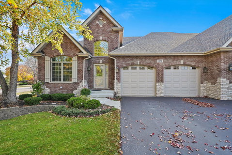This all brick 2,969 square foot luxury custom built townhome is a must see with three bedrooms and three and a half baths! This exquisite townhouse presents an exceptional opportunity for buyers seeking sophistication and comfort. You will be impressed from the moment you step inside as you are greeted with an elegant formal staircase, 2 story ceilings and hardwood floors. The formal living room is presently being used as an office. The formal dining room is adorned with Shaker wall paneling, trey ceiling and an exquisite chandelier providing the perfect space for those family celebrations and holidays. The large kitchen has custom Amish maple cabinets , professional-grade graphite appliances including a double oven, ample storage and plenty of counter space for cooking and entertaining, as well an informal eating space. This home boasts a great room with custom herringbone brick fireplace, 2 story ceilings and crown moulding. The primary bedroom is conveniently located on the main level and highlights refined trey ceiling, walk-in closet and full bath providing an oasis of relaxation, with a Jacuzzi tub, large walk-in rain shower and double sinks. There is a guest half bath conveniently located on the main level as well as the laundry room featuring updated washer/dryer and plenty of storage. This home offers a large loft area on the 2nd level overlooking the great room, and 2 more bedrooms including an additional ensuite. The full finished basement has 9 foot ceilings and travertine tile floors. There is a full wet bar with granite counters and solid wood cabinetry making for a fun and elevated way to entertain your guests. The 3rd full bath doesn't disappoint with large solid wood vanity and full glass walk-in shower. There is a separate space perfect for a home office. The large deck off the kitchen is perfect for moonlit evenings. No detail was overlooked including no lack of storage with an additional room featuring organized storage. A/C, furnace and roof all replaced within the last year; all appliances are less than 4 years old. This unit comes with its own irrigation system installed approximately 3 years ago. This home does not disappoint! Schedule your showing today!