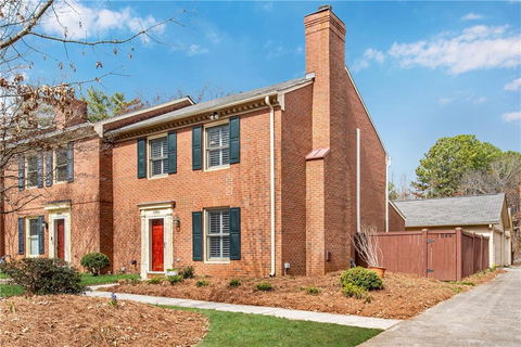 END UNIT BRICK TOWNHOUSE. New Roof, New Heating, New Air Conditioning and FRESHLY PAINTED! This spacious home has 2 King Size Bedrooms w/ large walk-in closets & 2.5 Baths. Bright and open floorplan. Hardwood floors on main level, family room that features gas fireplace, updated ceiling fan and lighting. Charming dining room opens to the bright kitchen with white cabinets and plenty of storage and counter space. Huge sunroom can be used as an office or additional living space. Large storage closet located in sunroom for your additional storage needs. The second floor boasts two large king size bedrooms with walk in closets. New paint, new carpet and move in ready! Custom plantation shutters throughout. Private, fenced back yard with secure access to the two-car garage (storage shelving and automatic openers). Wonderful patio area perfect for relaxing and entertaining. All Lawn Care is provided by the HOA - no need to mow grass! Exceptional location between Roswell and Alpharetta within 1 mile of GA400, North Point Mall, Avalon, Verizon Amphitheater, Parks and Historic Roswell's delightful Canton Street. Outdoor space is a must see! In addition to the 2-car garage there is a parking pad for guests.