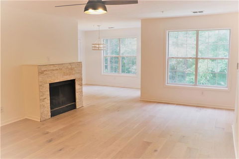 Completely Renovated and Gated home in Hembree Creek a boutique condominium community of 77 homes. Total Renovation includes: New Quartz Countertops and All New Appliances, All New Bathrooms including new tile, vanities and fixtures, All New Beechwood Flooring Throughout, New HVAC/Heat Pump, New Lighting Package, and New Paint! Main level unit includes: walk in closets, two bedrooms and two full baths, spacious laundry room, gas log fireplace, sun room which opens to covered patio, insulated windows and doors. The HOA dues cover termites, exterior pest control, yard maintenance, exterior of the building, trash, gate, water and pool. Nothing left to do but move in! Gated Hembree Creek is bordered by the greenspace of a large creek. A short walk to Hembree Park and just minutes to Downtown Roswell, Downtown Crabapple, Downtown Alpharetta, Big Creek Greenway, Verizon Amphitheater, North Fulton Hospital and 400 make this is highly convenient and central location. The is a very sought after location and the community has a very active HOA with NO RENTALS. Bonus: Top Rated School District!