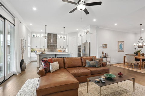 Downtown Roswell living nestled among the scenic sunset views of Big Creek. Grab a cup of joe at Summit Coffee, an IPA at the Proper Hop Tap House or a delicious meal at Chaplins or the Mill Restaurant. You'll also be a stones throw from Vickery Creek falls and trails and within a mile you'll find yourself in the heart of the Downtown Roswell. This exceptionally designed home shows like a MODEL HOME. 3 Bedroom/ 4 Full Bath / 1 Half Bath townhome with the primary suite on the main and an optional 4TH bedroom on the terrace level. Main floor features spacious chef’s kitchen with stainless steel appliances, bright white kitchen cabinets with lighted glass uppers, oversized quartz island, open flow floor plan with spacious living room that includes gas fireplace, formal dining, half bath and spacious primary suite with 2 walk-in closets, a beautiful spa bath and a beautiful and private back deck. The upper floor features an oversized loft area, an ensuite bedroom with walk-in closet, an additional secondary bedroom with walk-in closet, full bath and laundry room. The terrace level features a huge living space with the option to convert to a 4th bedroom, a full bathroom and multiple walk-in storage closets. This floor leads to an oversized two-car garage with storage on both sides. This building features the largest floor plans in the community and backs up to a private entry. Home features many upgrades including ion air cleaners in both HVAC systems, two water heaters, privacy shutters on balcony and option to add stackable washer and dryer to primary walk-in closet. Canopy community features Overlook Park with a fire pit, scenic views of Big Creek and a neighborhood dog park. Look forward to fun community progressive dinners and wine get togethers as well as all that Roswell has to offer. Fantastic location with hiking/walking trails, the farmers market, art festivals, incredible dining, great shopping, proximity to the Chattahoochee River and quick access to highways. Welcome home to a carefree, luxury-living lifestyle in downtown Roswell!
