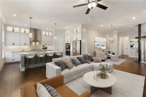 Experience the charm of historic Roswell and the convenience of walkable living right outside your door; with I-400 access minutes away! Located within the sought after newer community of Canopy; this luxurious Stanley Martin townhome offers the perfect blend of elegance, quality construction, and one level living for the discerning buyer. PRIMARY SUITE IS ON THE MAIN FLOOR; park at your front door for easy access! Or use the oversized double garage and access ELEVATOR to all 3 levels. Spanning over 3100 square feet, this residence includes 3 bedrooms, 4.5 bathrooms, and 2 laundry areas! The MAIN LEVEL welcomes you with its flexible, open-concept layout integrating the sleek modern ELEVATOR for upstairs guests and their luggage; or quick access to the recreation room and garage downstairs. On the main floor, large flexible space for Dining room can double as a great space for cocktail area! Dining area opens to the Family room, Kitchen, and spacious oversized covered deck beyond. Enjoy cooking and entertaining in this beautiful kitchen with oversized island, gas cooking, chef's sink, refrigerator with Keurig feature, and more! Family room and Kitchen open to spacious covered deck for expanding your dining and entertaining space or just relax with Fall football! THE MAIN LEVEL IS COMPLETED WITH PRIMARY SUITE featuring high ceilings, 2 expansive vanities, frameless shower, and 2 separate walk-in closets, with one including laundry equipment (that stays with home!). Rich medium-tone hardwood floors grace the main level and loft area upstairs, complemented by custom runners on both stairways and luxurious carpet in bedrooms. Upstairs find 2 ensuite bedrooms with full size laundry room AND large loft for library, gym, office space, or children's playroom! The terrace level is completely finished with large recreation room and full bath. Easy water access available if future plans include kitchenette for in-laws or guests. Tons of storage in this townhome, too! All bedrooms offer walk in closets. Some raw storage in terrace level as well as ample storage in the garage. New, full size safe in garage stays with the home. Many upgrades include custom lighting throughout much of the home, upgraded molding package, largest covered porch in the neighborhood, custom blinds, 4 sides brick, TV mounts in place, privacy shutters on deck, Savaria elevator ($60k+), full size safe, customized closets, and more. Step outside your future residence and walk to Summit Coffee, Souper Jenny, Moxie Burger, The Mill, and more. Enjoy the many trails in the area around Vickery Mill and the Chattahoochee River; summer nights at the park on the river, or stroll Roswell's original village square and the surrounding historic properties. Sought after Canopy community is a quiet retreat yet moments away from the vibrant dining and entertainment options of downtown Roswell. This exceptional townhome resides in an acclaimed school district and is at the precipice of new development, including a Food Hall coming soon! Experience the character and charm of historic downtown Roswell and the convenience of walkable living right outside your door. Incredible value for elevator home in sought after downtown Roswell!