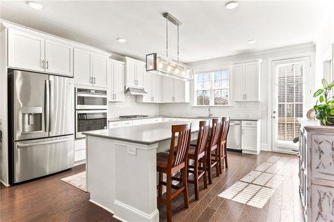 GORGEOUS NEARLY NEW 4 Bedroom Townhome WALKABLE to grocery, dining, & shopping. Perfect END UNIT location allows for tons of natural light on all 3 levels. You will absolutely love the finishes in this home including 9 FOOT CEILINGS on all levels, 42 inch cabinets in the chef's kitchen + gas cooktop, vent hood, WALK-IN PANTRY and huge island for prepping your favorite dish or gathering with friends over a glass of wine. The MODERN, expansive, open concept living area with trendy LED fireplace is perfect for entertaining. The upper floor is home to the primary suite with huge walk-in shower + spacious closet, 2 additional bedrooms that share a hall bath and the laundry room. The 4th bedroom suite is located on the lower level with the garage and is a perfect home office, teen suite or home gym (current use!). The 2 car garage has plenty of room for your cars + storage and there is enough room in the driveway for 2 additional cars + guest parking right next to this townhome. You are going to love this SIMPLE LIVING lifestyle, where you have everything you need within a short walk (Coffee, grocery & restaurants) and you are a very short drive to downtown Roswell & Alpharetta, Ameris Amphitheatre, Main Event, Top Golf & GA400. WELCOME HOME!