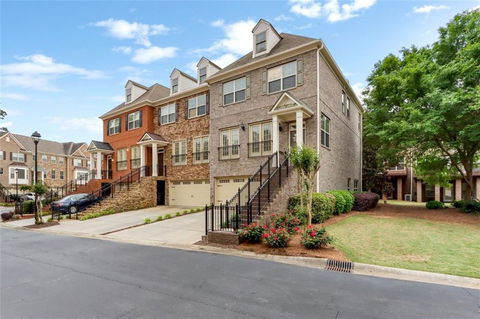 Gorgeous end-unit, 3-sided brick townhome in a GATED community in the heart of Roswell! Spacious open floor plan with tons of natural light! White cabinets, new countertops, stainless appliances, tiled backsplash. The double-sided fireplace flows right from the kitchen into the huge family room! Dining room/office on the main. Huge master suite which features a sitting area, large master bath with a double vanity, large shower, soaking tub and walk-in closet! 2 additional bedrooms upstairs. 4th bedroom/office/bonus room on the lower level with a full bathroom! Great lo Relax on the back deck overlooking nature. Convenient location, just blocks away from 3 schools, shopping and restaurants. Just 3 miles to downtown Roswell and 5 miles to GA-400! Beautiful property in a great location! Don’t miss this one!