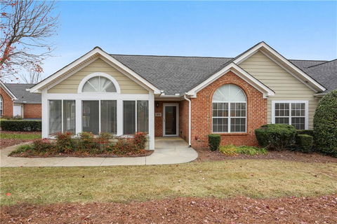 Beautifully totally renovated home in sought after Orchards at Crabapple. Upon entering the condo, you are welcomed into a spacious and open living area. The large great room is designed for comfort and features a fireplace with gas logs. Large windows provide scenic views and create an airy ambiance. The adjoining dining area is perfect for entertaining guests or enjoying meals with the family. The Chef's kitchen is a culinary haven, equipped with stainless appliances, quartz counter tops, white cabinetry and open to the great room. Whether you're a seasoned chef or simply enjoy cooking, this kitchen provides the perfect setting for preparing delicious meals. A breakfast bar offers a casual dining option and a convenient spot for morning coffee. The three bedrooms are generously sized, each offering a tranquil retreat. The master suite is a sanctuary of relaxation, complete with a spacious layout, a walk-in closet, and an en-suite bathroom featuring a new zero entry shower. The additional bedrooms are versatile spaces that can be used for guests, a home office, or hobbies. One of the highlights of this condo is the sunroom, a serene space flooded with natural light. This versatile area can be transformed into a cozy reading nook, a home office with a view, or simply a place to bask in the warmth of the sun. All systems are new. This home has been renovated completely. This condominium is part of an active adult community, offering a range of amenities for residents. The community fosters a sense of camaraderie and an active lifestyle. It's not just a home; it's a vibrant and engaging community where residents can enjoy the best aspects of adult living. Walking distance to shopping and dining. Just minutes away from Historic Crabapple, Roswell and Alpharetta.