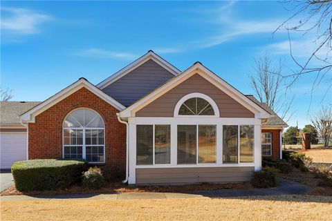 Hurry! Don't miss this lovingly maintained, one level end unit in the highly sought after Orchards at Crabapple. Light & Bright, Fresh & Clean, this treasure receives A+ in the 3 C's...Comfort, Community and Convenience. With vaulted ceilings in every room, step right into the fireside family room drenched in natural light emanating from the sunny & serene sun room. Enjoy the openness and flow of the floor plan leading through to the gracious dining room and kitchen complete with ceiling fan and recessed can lighting. The eat-in kitchen features a clean, modern black and white flair with gorgeous black granite counters & bar plus gleaming white cabinetry. The split bedroom plan effectively offers the opportunity for 2 roomy primary suites, each with walk-in closets & ensuite baths, making it perfect for roommates, guests or a bonus in-home office. Here you can delight in easy living as the HOA takes care of the exterior maintenance, water, trash pick-up and landscaping; but don't miss the front garden bed if you like to dig in the dirt a little; it is full of spring and summer bloomers! Fantastic amenities are an easy walk away & include a fitness center, heated saltwater pool, a fabulously appointed fireside clubhouse w/kitchen, and a calendar full of social activities to enjoy. Conveniently located in desirable N. Fulton county, within minutes you have access to groceries, restaurants and the lively happenings in the vibrant City Center areas of Milton, downtown Roswell, Alpharetta, & the upscale shopping & eateries at Avalon. A few things to note: *Public records show square footage at 1330 but the finished sun room makes 1500+ square feet. *Rentals are allowed in the community but controlled, so there is a waiting list. *Top tier schools **Also, please note that the Orchards at Crabapple is not age restricted and is open to everyone! Welcome home to a gracious, friendly atmosphere and that peaceful, easy living!