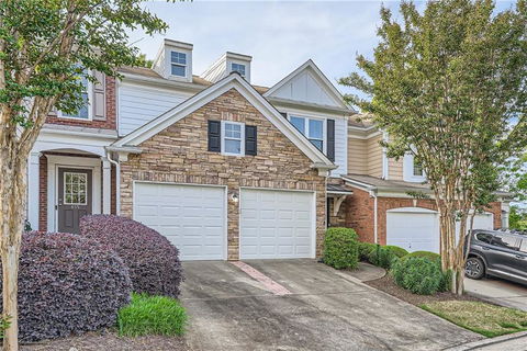 THIS IS A MUST-SEE MOVE-IN READY HOME!!! MANY UPGRADES, new stove and microwave, upgraded stainless steel refrigerator and dishwasher, brand new carpet upstairs, all new windows in the main rooms, new sliding glass door, new front door, new upgraded garage door and added storage rack, all new faucets and toilets, new custom overhang over the front door/porch, new HVAC system with Nest thermostat, Ring doorbell and Ring camera in the backyard. Amazing townhouse in Roswell!!! Just minutes to Hwy 92, GA 400, Alpharetta Hwy & Northpoint Mall area! Located in desirable Regency at Mansell, located close to BOTH downtown Roswell and downtown Alpharetta. This home has a private wooded backyard with lots of natural lighting. Beautiful details, stone and concrete siding to interior trim detail, gleaming hardwoods floors on the main floor. Open floorplan with views from the kitchen into the family room with gas fireplace! 3 bedrooms upstairs with laundry room. Main level also has a large 2-car garage w/ room for storage! LOW HOA. WILL GO FAST! TOP SCHOOLS!