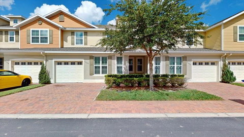 This gorgeous townhome is located at "The Sanctuary" in Steven's Plantation St Cloud. Four bedrooms, 2.5 baths. Over 1800 living square feet loaded with upgrades! Spacious Master bedroom located on the first floor. Master bath has double sinks, garden tub, shower and walk in closet. Ceramic floor tile through-out the first floor and wet areas. kitchen cabinets with crown molding, granite countertops, stainless steel sink, refrigerator, range, dishwasher and microwave. Window blinds, garage door opener, Paver driveway and sidewalk. Conveniently located near shopping, golf course, restaurants, 417 and turnpike. Community pool and No CDD fee!