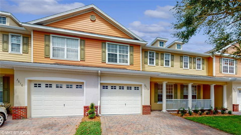 This GORGEOUS, pristine townhome is in the much sought after SANCTUARY/SOUTH TOWN Stevens Plantation community in St. Cloud. This buildings exterior was completely redone within this past year and they just received new landscaping! Upon arrival a quaint front porch welcomes you to have a seat, relax and take in the tranquility of the neighborhood. As you enter the home, to your immediate right you’ll find the BEAUTIFUL eat-in kitchen showcasing striking solid counters, a solid topped breakfast bar, an UPGRADED glass tile backsplash and modern STAINLESS STEEL appliances. Your kitchen overlooks the living/dining room combination, where built-in shelving adds a modern flair. This floor plan is not only spacious but ideal for both relaxing and entertaining! The dining room is could be utilized as a cozy sitting area, a wonderful spot where you can enjoy your favorite beverage, curl up with a book and take in that AMAZING Florida sun. Sliding glass doors from the combined living areas lead to an open patio. Off the entry hallway is the entrance to your laundry room that includes cabinets for storage and your half bath featuring a pedestal sink. All the bedrooms and full baths are located on the second floor. Your master suite is the perfect place to unwind at the end of the day. The en suite master bath has a PEACEFUL spa like feel to it, showcasing a dual GRANITE topped vanity, a beautiful garden tub, separate walk-in shower and a walk-in closet. Two additional bedrooms can be found on this floor along with another full bath that also includes a GRANITE topped vanity and a tub/shower combo. You’ll enjoy tile throughout the first floor and carpeting on the stairs and in 2 of the bedrooms. A SPARKLING community pool is perfect to get some laps in and cool down on those warm summer afternoons. Easy access to the 417 and the turnpike ensures a smooth commute and this home is conveniently located near local shopping and dining options. VERY WELL maintained, this townhome has a welcoming ambiance that can’t be beat! WELCOME HOME! A MUST SEE!