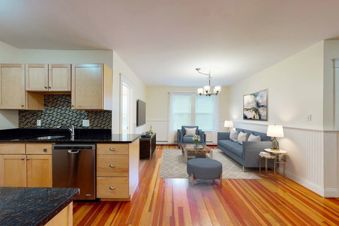 Renovated two plus bedroom unit in the Harborside neighborhood near Palmer Cove. Freshly painted with beautiful hardwood floors throughout. Versatile floor plan, can be used as either a two or three bedroom unit. Granite and and stainless kitchen with maple cabinetry. In-unit laundry. Less than a 10 minute walk to the shops and restaurants of charming Pickering Wharf at the waterfront. Ample basement storage. Commuter rail and seasonal ferry to Boston. Pet friendly building. Please follow COVID-19 protocols, face mask required.