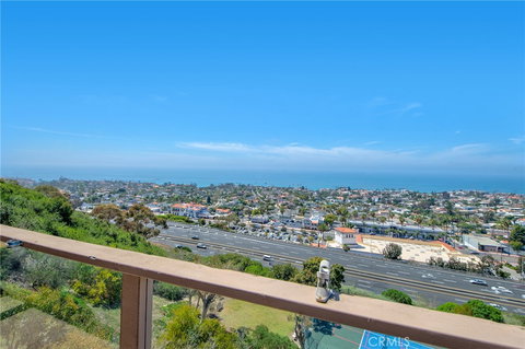 **VIEWS VIEWS VIEWS** Top floor condo with expansive views of Dana Point, Catalina Island and Seal Rock. This condo is priced appropriately to allow room for a complete refresh. With paint, flooring, lighting fixtures, new kitchen cabinet doors, countertops and appliances, you can have the ideal home or vacation get-away. This condo already has a great end of cul-de-sac location with a gated community driveway and private two-car garage. The floorplan offers over 1500 square feet of living space and is bright and open with views from almost every window! The outside deck is the perfect place to take in the sunsets and the 4th of July fireworks! There are two guest bedrooms and an oversized primary bedroom with an attached deck for additional outside space. The two bathrooms both have double sinks, a stand alone shower in the primary and a tub/shower combo in the guest bath and are in original condition. This is a small 9-unit complex with a low HOA of only $300 per month which includes water and trash. The complex is located in close proximity to the downtown area with shopping and restaurants, the beach and easy freeway access. Now is your chance to get that million dollar view at a great price!