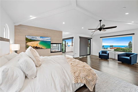Possibly the most remarkable condo within steps of the San Clemente Pier, this immaculate penthouse pairs mesmerizing Catalina ocean views with exceptional design elements and the finest of materials. Upon entry into the Spanish inspired villa, your eyes are immediately drawn to the expansive La Cantina doors that seamlessly blend the interior and exterior living spaces. The interior showcases Carrera marble floors, glass rock fireplace, 9-foot ceilings, mahogany vision lite doors, and a floor to ceiling accent wall veiled in Spanish porcelain. Designed with elegance, the gourmet kitchen is adorned with custom cabinetry, glass tile backsplash, quartz countertops with waterfall edge detail, and professional-grade Thermador appliances. Completing the main floor is a classy junior suite that is sure to impress guests, along with the third bed and bath, plus powder room. A true work of art, the entire second level of the home is comprised of an opulent master suite boasting beamed ceilings, walk-in closet with custom built-ins, elegant two-way fireplace, and private ocean view deck with dual bi-fold doors. Leaving little to be desired, the master bath offers floating vanities, oversized walk-in shower with dual shower heads, and separate soaking tub with waterfall faucet. Additional highlights include three private garaged parking spaces, elevator, whole house sound and entertainment system, outdoor kitchen, and custom retractable window treatments.