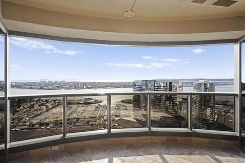30th-floor bubble unit in the West Tower at the sought-after Harbor Club, featuring panoramic views of the Pacific Ocean, San Diego Bay, Downtown skyline, Coronado, and the Coronado Bridge. This 2-bedroom, 2-bath residence offers 1,474 sq ft of well appointed living space and a west-facing balcony with steady ocean breezes and sunset views. Harbor Club residents enjoy a full range of amenities including a heated lap pool, fitness center, sauna, club room, outdoor BBQ areas, and 24-hour front desk service. Two secured parking spaces included. Highly walkable location near the Gaslamp Quarter, Convention Center, Seaport Village, shopping, Petco Park, and the Downtown Marina.