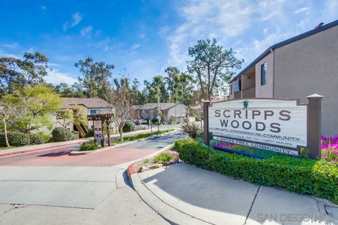 FANTASTIC location within the complex which includes a PRIVATE one car garage! This unit is one of a kind. It sits on the end offering tons of natural light, with a big picture window in the dining room and large slider to the balcony in the living room. In addition you also have a PRIVATE enclosed patio. The unit has been upgraded with pristine white cabinetry, luxury vinyl floors, newer windows, decorative ceiling fans and lights, and extra storage. The bedroom features a walk in closet along with an additional sliding closet, extra linen cabinet, and another mirrored closet in the dining area. The unit offers tree views and a serene setting. Ideal location in Scripps Ranch close to many parks, shopping, and the I15. The unit sits above the private garage. The condo is single level but there are some steps from the exterior to get to the unit itself. There is no washer and dryer inside the unit, but conveniently there are multiple community units with one being the little building just to the right of the garage. Equipment: Garage Door Opener, Range/Oven Sewer: Sewer Connected Topography: LL