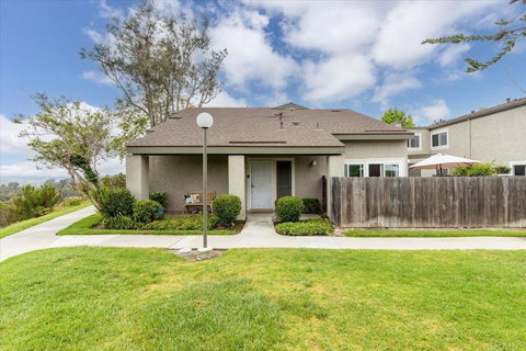 Beautiful end-unit townhome in the heart of Tierrasanta’s Villa Martinique with wonderful canyon and city views. This rare 3-bedroom plus loft home, features a primary bed/bath downstairs with an additional bedroom, and 1 upstairs bed/bath and large loft, beautifully updated kitchen with granite counters and stainless steel appliances, and a private laundry room. Enjoy central air conditioning, newer windows, plantation shutters, and easy-care laminate and tile flooring. Relax or entertain on the spacious private patio with extra storage. Quiet, private location just steps from the pool, clubhouse, and two side-by-side parking spots (one covered). Close to trails, shops, restaurants, and top-rated schools.