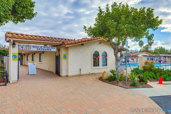 Residents enjoy many amenities. The building has access to the Rancho Bernardo Swim and Tennis Club, which includes a pool, gym, and sport courts. Sidewalks, storm drains, and street lights enhance the surrounding area. A playground and barbecue area provide additional spaces for leisure.