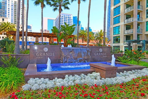 Stunning, stylish, fully furnished, exquisite 2022 remodel, move-in ready. Sweeping 180 degree panoramic Pacific Ocean views from La Jolla to Mexico from this spectacular 23rd floor downtown waterfront condo overlooking cruise ships, sailboats, marine traffic and gorgeous sunsets from the premier location on San Diego Bay. The most sought after 3 bedroom floor plan on the Front Porch of Millionaire's Row. Tasteful interior furnishings. Totally remodeled kitchen, dining room, living room, bedrooms, bathrooms & flooring. Floor to ceiling views from most every window + two balconies for wonderful entertaining. Includes Webpass internet and Amazon Fire Stick streaming services to three TVs. Turn key beautiful remodel! Remodeled light and bright kitchen with new countertops, S/S sink, single handle faucet fixture, reverse osmosis water filtration system and backsplash; new triple paned windows, LED lights throughout, new ceiling fans, new bathroom vanities, countertops, toilets, shower and wood vinyl flooring; and newly painted condo with color coordinated designer paints. Like new GE washer and dryer. Upgraded double hanging rods and double shelves in closets for additional hanging and stacking clothing. Separate Living Room and Master Bedroom patios (totaling 300 square feet) overlooking San Diego Bay. Two prime side by side parking spaces (each 9'x18') assigned to this unit on the premier P1 parking level plus a large private assigned 7ft x 4 ft x 8ft deep chain link storage unit (224 cu. ft.) in the fob locked storage room close by on the premier P1 level in the gated, underground parking area. The Grande South at Santa Fe Place combines exceptional architecture, extraordinary views, spacious landscaped gardens, private tree lined courtyards, visitor’s suite with parking to accommodate guests & family, and total comfort to its owners. Like no other. Located in downtown San Diego’s premier Columbia District, it rises 39 stories high with 221 residences directly above and the front door to San Diego Bay, providing spectacular 270 degree views of the Pacific Ocean and downtown San Diego Skyline. For those owners working from home, the front office/3rd bedroom adjacent to the living room has absolutely the most gorgeous setting over San Diego Bay and the Pacific ocean. The Grande South features all the luxuries of the finest resorts including 24 hour concierge service plus physical and closed circuit surveillance camera security, onsite professional property management, facilities director and building maintenance staff, 80 ft. outdoor swimming pool and spa, fully equipped fitness center, separate sauna and steam rooms with private men’s and women’s locker rooms with showers, central water conditioning system, window cleaning, 24 hour roaming attendant, water, electric fireplace, bicycle storage, huge meeting room and lounge area next to the newly designed lobby with full kitchen, entertainment and bar areas. Resident access only to all entrances and parking. Walking distance to international cruise ships, Little Italy, the Gaslamp District, Seaport Village, Waterfront Park, the Embarcadero, the USS Midway aircraft carrier museum, a multitude of shops and restaurants, the future Manchester Gateway project and much more. Five minutes to the San Diego Airport; PETCO Park, home of the San Diego Padres; Sea World and, of course, the famous San Diego Zoo. You have everything at your fingertips.