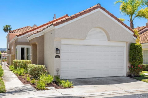 Come see this pristine, single-story home in the gated community of Masters Hill in Bernardo Heights! This lovely, well-maintained home has 2 bedrooms, a dedicated office with built-ins and a desk, and 2 full baths. The updated kitchen has been refreshed with refaced shaker cabinet doors and fronts, and boasts granite counters, stylish marble tile flooring, a convenient island, and a stainless steel frig. The sliding doors and most of the windows have been replaced recently, and you'll enjoy vaulted ceilings, engineered hardwood floors in the main living areas, and built-in shelves and cabinets in the office. Take in the beautiful views of the hills and The Heights Golf Club course from your backyard patio, or enjoy morning coffee on your private patio off the primary bedroom. And, you'll love the private, low-maintenance backyard with pavers and a patio cover to keep you cool. The community amenities include two pools and spas, cable tv, front yard landscape maintenance, roof and exterior stucco maintenance, and exterior termite control. Also, included is your membership to the Bernardo Heights Community Club House with a fitness center, pools, pickleball, tennis and basketball courts, playground, and a recreation room. Close to local Poway schools, shopping, golf courses, and freeways. Welcome home!