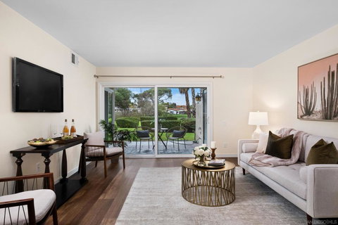 Welcome Home to Your Luxurious Golf Course Condo! Discover the epitome of modern living in this fully remodeled 2bd/2bth, 1,091sqft corner unit condo. Located in the heart of a prestigious RB Inn golf course community, this move-in ready residence offers an unparalleled lifestyle that combines comfort, convenience, and resort-style amenities. Step inside to discover an updated interior, showcasing the latest design trends. The open floor plan creates a seamless flow between the living, dining areas, perfect for entertaining guests or spending quality time with loved ones. New natural tone paint and new windows create a warm & inviting ambiance. The master bedroom is complete with an ensuite bathroom, providing privacy and relaxation and peaceful views. An additional bedroom offers versatility and can be used as a home office or a cozy guest room. The condo's enviable location allows for a short stroll to the golf course, making it an ideal haven for golf enthusiasts. Embrace the tranquility of the surroundings as you enjoy the picturesque views and lush greenery. The HOA conveniently covers water, cable TV, and high-speed internet. This ensures a hassle-free lifestyle, leaving you more time to enjoy the multitude of amenities within the community. With Award Winning Poway Unified School District, you can feel confident in providing your children with an exceptional education. The nearby Bernardo Winery and Poway Lake offer additional recreational options for leisurely weekends and memorable experiences. Embrace the peaceful and scenic surroundings. Your dream home awaits! The family-friendly environment boasts a resort-style swim and tennis club, positioned less than a mile away. Immerse yourself in the splendor of three pools, each offering its own unique experience - a lap pool for those seeking a refreshing workout, a 21+ pool for adults to relax and unwind, and a kids' pool for the little ones to splash and play. Take advantage of the tennis courts, playground, and the recreational/yoga rooms, providing endless opportunities for active and social engagement. In addition, the exercise rooms cater to health and wellness enthusiasts, allowing you to maintain an active lifestyle right within your own community.