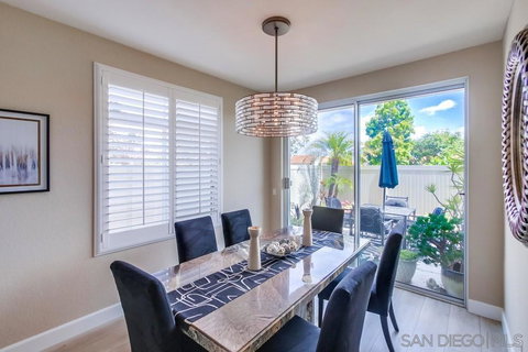 Experience the epitome of modern living in this stunning 3-bedroom, 2.5-bath townhome in the Legacy community within the desirable Scripps Ranch neighborhood of San Diego. Tastefully decorated, this home boasts elevated lighting fixtures and a fully equipped laundry room with a washer and dryer, enhancing both functionality and style. Step inside to find a beautifully appointed living space where contemporary design meets comfort. The open-concept floor plan seamlessly connects the living area to the dining room, leading into the eat-in kitchen, featuring dual ovens, ample countertops and space for all your culinary needs. Fresh paint throughout and elegant plank flooring downstairs create a bright and inviting atmosphere. Upstairs, the master suite is a serene retreat, complete with a vaulted ceiling, spacious footprint and a luxurious en-suite bathroom with a walk-in closet. Two additional bedrooms offer flexible space for family, guests, or a home office — ideal for today's remote work and study needs. Outside, the low-maintenance backyard is a private oasis, perfect for relaxing and entertaining under the Southern California sun. With its prime location, this townhome provides easy access to top-rated schools, lush parks, and all the amenities Scripps Ranch has to offer. Welcome to 12391 Caminito Vibrante — where every detail is designed for your comfort and convenience.