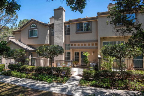 Welcome to 12507 El Camino Real Unit C, a charming three-bedroom townhome nestled in the vibrant heart of Carmel Valley. This residence is perfectly positioned within walking distance to One Paseo and Del Mar Highlands, where a variety of shops, eateries, and nightlife options await. As you step inside, you’re greeted by a spacious, open-plan layout that boasts vaulted ceilings and ample natural light streaming through large windows, creating a bright and airy ambiance. The central living area features a cozy fireplace, perfect for relaxing evenings. The kitchen is efficiently designed for everyday use, featuring a peninsula island with barstool seating, ideal for morning coffee or chatting with friends while you cook. The dining area opens to both the kitchen and living areas and extends onto a large deck. Practical amenities such as a two-car garage, new carpeting, and freshly painted walls ensure this home is move-in ready. Additionally, the front patio offers a tranquil space to unwind, leading to a neatly kept yard maintained by the homeowners’ association. This townhome is not just a place to live but a gateway to a coastal lifestyle of convenience and leisure in one of Carmel Valley’s most sought-after neighborhoods.