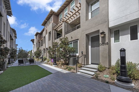 BACK ON THE MARKET! Here is your rare opportunity to own a newly constructed home in the highly sought after and SOLD OUT Lumen Community in Pacific Highlands Ranch! Less than 10 minutes from the beach! This beautifully upgraded home is conveniently located next to San Diego's top schools, as well as premium shopping and dining options. With over $100,000 in upgrades. Don't miss the opportunity to make this stunning home in the Pacific Highlands Ranch neighborhood your own! See SUPPLEMENT : This residence boasts luxury vinyl plank flooring throughout the home paired with upgraded tile flooring in the kitchen and main living area, fully owned solar. Upgraded and soft-close cabinets, white farmhouse Kohler sink, quartz countertops with a waterfall island, and full quartz backsplash in the kitchen. Additional upgrades include: custom light filtering shades throughout home, high-end Italian tiled showers, garage epoxy, installed garage ceiling storage racks, reverse osmosis system, upgraded black hardware on cabinets and faucets, upgraded recessed lighting with dimmer switches in each bedroom & living room, custom paint throughout the house. This house is fully equipped with smart home technology and features dual primary bedrooms on the top floor and a guest suite on the first floor, each with their own full bath.