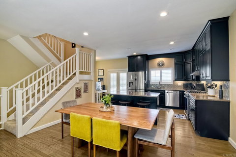 Located in the heart of South Park this 3 bed 2 bath townhome shows its pride of ownership. It boasts a remodeled kitchen with solid maple cabinets with soft close drawers and doors, quartz countertops, custom backsplash, USB ports and stainless steel appliances. It has an open floorpan with refinished hardwood floors, a fireplace, french doors that lead you to the private front patio along with a private back patio next to the kitchen and breakfast nook. It has a 2 car attached garage and owned Tesla Solar and Powerwall. Walk to restaurants, shopping and coffee shops.