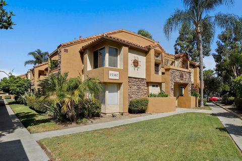 Come live your best life in this gorgeous top floor end unit located in a quiet enclave within the community of Villa Taviana. As you enter you will gaze upon a light and bright open floor plan that allows the living room, dining area and kitchen to flow seamlessly together. Open the living room balcony doors wide to let the cool breezes flow through all year long. The kitchen features gorgeous cabinetry, granite counters, stainless steel appliances, recessed lighting and an eat-at breakfast bar. In-unit laundry fits a stackable washer and dryer and takes the chore out of laundry day. The primary bedroom enjoys a walk-in closet and direct access to the balcony creating an ultimate indoor outdoor living atmosphere. The bathroom has been upgraded to feature granite counters and shaker cabinetry. You will find plenty of storage space throughout this beauty. Villa Taviana offers its residents resort-quality amenities such as a sparkling pool, spa, BBQ, clubhouse, a fitness center, and tennis courts. Located in the highly-acclaimed Poway Unified School District. Close to Black Mountain Open Space with miles of trails to explore! Quick freeway access will make commuting a breeze! Don’t let this opportunity pass you by! Complex Features: ,, Sewer: Sewer Connected Topography: LL