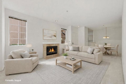 Welcome to 18812 Caminito Cantilena #124, a ground-floor, corner unit condo with a 1-car garage located in the highly desirable Morada at Bernardo Heights community in Rancho Bernardo, San Diego. This 1 bedroom, 1 bathroom condo offers 814 square feet of well-designed living space and the rare bonus of a private detached garage. The open floor plan features a spacious living room with a cozy fireplace, large windows, and sliding doors that lead to a private east-facing patio, perfect for enjoying morning sunlight and indoor-outdoor living. The kitchen flows seamlessly into the living and dining areas, ideal for both everyday living and entertaining. The generously sized bedroom includes ample closet space, while the unit also features in-unit laundry, central heating and air, and a quiet location tucked within the community. Being a corner unit, the home offers added privacy and natural light. Morada at Bernardo Heights is a gated, resort-style community offering multiple swimming pools, spas, a fitness center, tennis and pickleball courts, walking trails, and beautifully maintained grounds. Conveniently located near top-rated schools, shopping, dining, golf courses, freeway access, and all that Rancho Bernardo has to offer. This home delivers comfort, convenience, and lifestyle. Don’t miss this opportunity to own a garage-equipped condo in one of North County San Diego’s most sought-after communities.