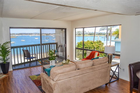 Updated, premiere view (Bay / Beach / City Lights) 3 bdrm, 2 bath condo features new wood flooring, new Anlin windows (white interior/bronze exterior) being installed, new paint, Fireplace in LR, large storage closet can used for storage or an option room; reading room or office. Exterior updates to start this fall! (see attached mls docs). Short Term Vacation rentals and pets are allowed. A 2nd balcony from Dining Area offers more views. Peek views from all bedrooms. Walk in laundry and ample storage. Neighborhoods: South Mission Beach Equipment: Range/Oven Other Fees: 0 Sewer: Sewer Connected Topography: LL