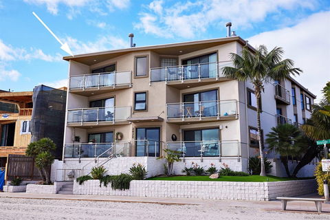 Lovely and bright, this top floor home sits above Bayside Walk with endless views across the beach and bay. The home has been a popular vacation rental that sleeps 7 with the 3rd bedroom space. The upgraded interior includes a fireplace and an open floorplan with plenty of room for dining and entertaining guests. With balconies on the front and side of the unit, there is optimum outdoor space to take in the views or enjoy the outdoors. It also has 2 parking garage spaces which is a rarity in the beach areas. The building exterior and common areas were recently remodeled, making it an attractive place to come home to. All furnishings are included in the sale. Equipment: Dryer, Range/Oven Sewer: Sewer Connected Topography: LL