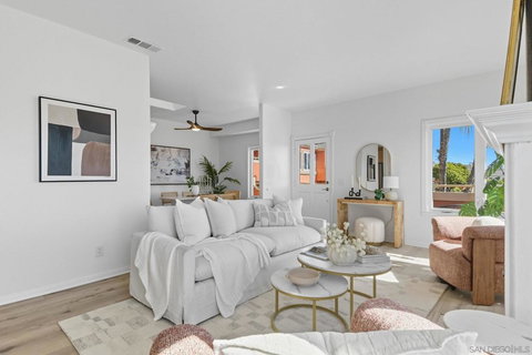This updated corner condo offers features you rarely find in one place: panoramic views of the bay and downtown skyline, a private two cargarage with a large bonus room, high ceilings, and abundant natural light. From the moment you step inside, the sense of openness isundeniable. Walls of windows frame the harbor and cityscape, while the living room with its cozy fireplace flows into a bright layout in aboutique community of just 12 homes. As a corner end unit, it also provides a private entrance, and its southwestern exposure fills the homewith sunlight throughout the day. The two bedroom, two bath floor plan is practical and inviting, with a primary suite designed to take in theviews and an en suite bath that includes a jacuzzi tub for unwinding after a long day. The kitchen and dining area connect easily, enhanced bya skylight that makes the space feel warm and bright. The private garage is another rare highlight, offering secure parking plus an oversizedbonus room ready to become a gym, art studio, wine cellar, workshop, or the storage space you never thought possible in a condo. Low HOAdues and a pet friendly policy that allows two pets of any size make the home even more appealing. Just blocks from neighborhood favoriteslike The Starlite, Aero Club, Shakespeare’s Pub, El Indio, and Gelato Vero, and minutes from Little Italy, Bankers Hill, Balboa Park, and theSan Diego Bayfront, this residence combines the energy of city living with the peace and charm of a small, well kept community.