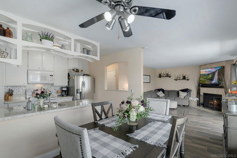 Modern farmhouse style condo situated within the gated Loma Portal Villas complex! This charming property boasts: a semi-open kitchen with crisp white cabinetry and quartz countertops, in-unit laundry, a cozy fireplace, updated bathrooms with tile accents, wood-look tile throughout the home and a private patio with views of the pool. Directly below the unit is a two-car garage with plenty of storage space. The Loma Portal Villas offers its residents access...