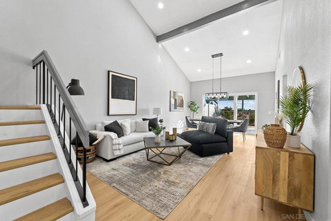 Welcome home to this exquisitely remodeled 4 bed 2.5 bath twin home. This highly sought after community and rarely available floor plan is tucked away in a sleeper area of Del Cerro. Thoughtfully equipped with brand new shaker cabinets, quartz countertops, new appliances with a wine chiller, luxury vinyl flooring, custom tile in bathrooms and kitchen, brand new lighting fixtures, freshly painted exterior and interior, new windows, full termite clearance and so much more. This home is turn-key and ready for an immersive lifestyle of San Diego living. This hidden gem is conveniently located to shopping, restaurants, schools, gas, and freeway access. Check out this property before it's gone. Upgrades include…. * All new, freshly painted exterior and interior. * New interior two panel and exterior doors. * All new vinyl dual pane windows, sliding glass doors, and master bathroom, shower glass door * All new interior and exterior light fixtures * New door handles, cabinet handles, towel bar rack kits, door, hinges, and doorstops * All new luxury vinyl flooring throughout * Luxury porcelain tile in bathrooms, stack stone fireplace, beveled subway tile for kitchen backsplash, * New Encanto white shaker vanities, kitchen cabinets, and wine bar * New Quartz countertops for vanities, kitchen cabinets and wine bar. * All New Stainless steel appliances and garbage disposal * All new 5 1/2 inch base molding and 3 inch casing * All new mirrored closet doors * New shelves and poles for all the closets. *Newly designed master bathroom with floor to ceiling tiled shower. *Remodeled hallway bathrooms *New fixtures, chandeliers and finished plumbing throughout *Clear Termite recently fumigated