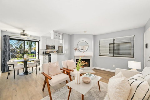Welcome to this beautifully refreshed condo located just minutes from the heart of North Park. This west-facing home is filled with bright natural light and offers beautiful sunset views framed by palm trees, creating a relaxed Southern California lifestyle you’ll enjoy every evening. Inside, you’ll find brand new luxury vinyl plank flooring and fresh paint throughout, giving the home a clean, modern, move-in-ready feel. The kitchen is both functional and stylish, featuring granite countertops, a large farmhouse-style sink, and newer Whirlpool stainless steel appliances. An oversized LG WashTower provides the convenience of full-size, in-unit laundry. 1 garage space and 1 non-garage space, for 2 spaces total. The community offers lush, well-maintained landscaping along with low HOA dues that include water, sewer, and trash, adding exceptional value and predictable monthly costs. Parking is a standout feature with space for two vehicles and an automatic garage door, a rare and valuable amenity in this highly desirable neighborhood. Whether you’re looking for a stylish primary residence, a low-maintenance urban retreat, or a smart investment, this North Park condo delivers comfort, convenience, and classic San Diego.