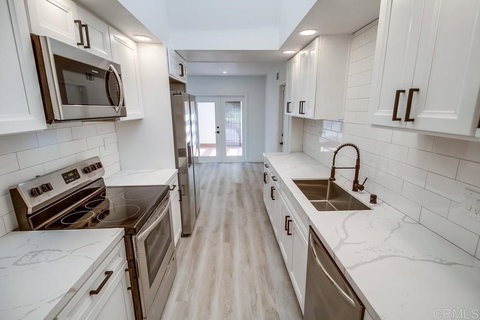 Welcome to this spacious, fully remodeled, END unit! Located in central San Diego, close to all major freeways, SDSU, and tons of great shopping and restaurants. Attached single car garage, plus tons of guest parking. This unit is close to the community pool and spa! Low HOA. Highly desirable area, rarely on the market! Brand new kitchen, with custom cabinetry, black hardware, stainless steel appliances, all new recessed lighting, all new flooring, new interior paint, mirror closet doors! A very large Master bedroom, sling door that opens up to private patio to enjoy for years to come!