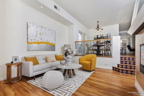Rarely available 3 BR, 3BA Renaissance townhome offers expansive living in the heart of vibrant North Park. With nearly 1600 sqft of living space, a 200 sqft finished bonus area off the 2-car attached garage, personal outdoor space and $100/mo HOA, you’ll find no better value. This residence features a small private courtyard at the base of the front door, perfect for pets, outdoor play, or as the homeowner sees fit. The living room features voluminous ceilings to bring in natural light and is grounded by a cozy fireplace. Off the living room is a full bath and versatile room, perfect for a bedroom or home office. Move up a small flight of stairs into the formal dining room, with a glass sliding door that opens to a Juliet balcony creating a refreshing cross breeze. From the dining room, enter to the open kitchen complete with gas cooking, stainless steel appliances, breakfast nook and attached great room, with custom built in cabinets. Upstairs, are two generously sized en-suite bedrooms. The primary en-suite features a sliding glass door with access to a private balcony. The spa-like bathroom features a double sink vanity, walk-in closet, shower and soaking tub. You’ll find a hidden surprise inside the 2-car attached garage: a fully finished 200 sq ft bonus room equipped with bar, pool table, heating and air, and extra storage. This intimate 24 residence community was built on the famous site of Aztec Bowl, the original sign which remains at the pedestrian entrance on 30th. As a reminder of the historic nature of this site, the developer laid wood from the Aztec Bowl lanes at the entrance of each residence. The Renaissance is located close to restaurants, microbreweries, shopping, parks with easy freeway access and a 15-minute drive to the beach.