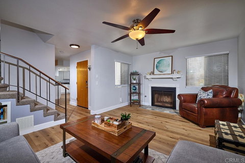 Amazing 2bed/2.5ba 1236 sq ft townhome in beautiful Talmadge. LISTEN TO ALL THE UPGRADES: 2017-building stucco redone, patio concrete redone, 2019-New A/C, New Carpets Upstairs, Master Balcony Re-Waterproofed, 2020-New Vinyl Luxury Floor installed downstairs, New Garage Door, All cabinets in kitchen and walls painted, 2021-New Downstairs Guest Vanity, Newly Painted Walls throughout the Home, and Newly painted Trim, All Doors, All Bathrooms, and All Cabinets, New Stone Hearth, New Water Heater, A completed Inspection of the Chimney and a Sweep, and New Attic Insulation installed. Large upstairs laundry closet fits Full Size Side by Side Washer/Dryer. There is even a large standup Attic that runs the length of the upper level and can be converted into the perfect Home Office. The HOA is scheduled to paint the building trim and seed the front lawn and add new plants. This is a wonderful community where you can stroll down the sidewalks through the neighborhoods, or stroll to get coffee and food. This is the perfect home!