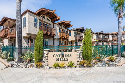 Best location in Cypress Hills with harbor and ocean views! Welcome home to this fully remodeled townhome featuring 3 ensuite bedroom/bathrooms with private entrance, view decks and private patio. Enjoy the panoramic skyline and bay views from this rarely available corner townhome. Conveniently located on the cusp of Bankers Hill, this tri-level contemporary craftsman style townhome lives like a single-family home. Gated entrance from the street, only one common wall & no neighbors above or below. The home offers an attached garage, vaulted ceilings, kitchen skylight, luxury vinyl flooring, contemporary fully remodeled kitchen & bathrooms, three balconies to appreciate the views/fireworks & large private patio downstairs. Complex features guest parking. This property won’t last. Each level has a light and bright bedroom with ensuite bath and balcony. On the ground floor there is a separate entrance and private patio which would be great for roommates, guest, or home office. The large master bedroom has two closets, a large walk-in shower, dual sinks, and an upgraded toilet with bidet. The star of the property is the updated kitchen features newer Energy Star GE SS appliances, custom cabinetry, an extended breakfast bar and built ins. Property features Nest fire detectors and doorbell for added security. The private garage is accessed inside the community gates and has full sized laundry, storage space and direct entry into the unit. This community is in a fantastic location and close proximity to Balboa Park, Little Italy, Hillcrest and the 5 freeway.